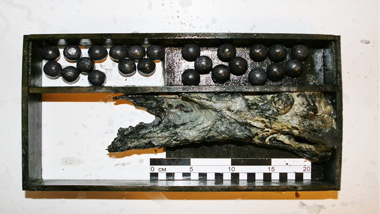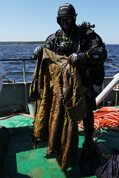 В течение трех недель 18 крестьян ныряли в прорубь и сумели поднять на лед верхнюю часть груза судна — «рогожи в тюках» и «кожи в тюках», причем кож было поднято 350 тюков, которые, по словам крестьян, составляли «малую толику груза».
